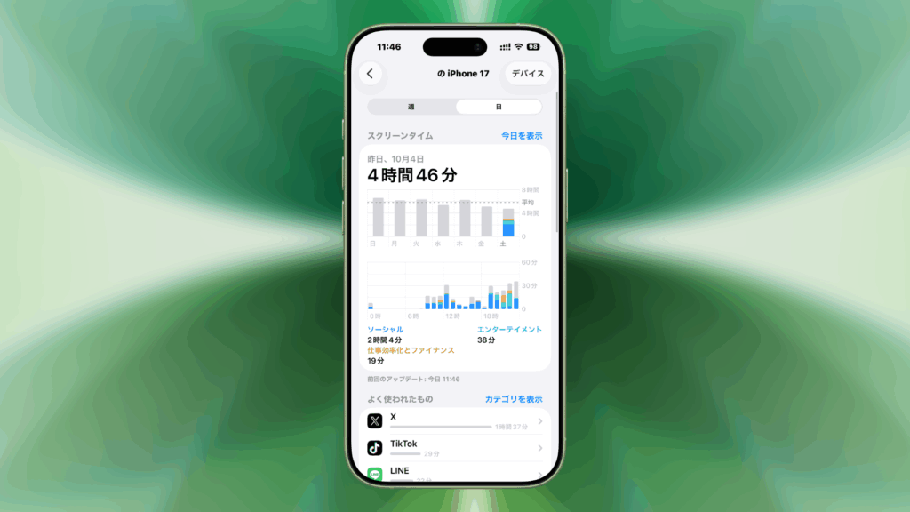 ちなみのこの日のスクリーンタイムはこんな感じです。