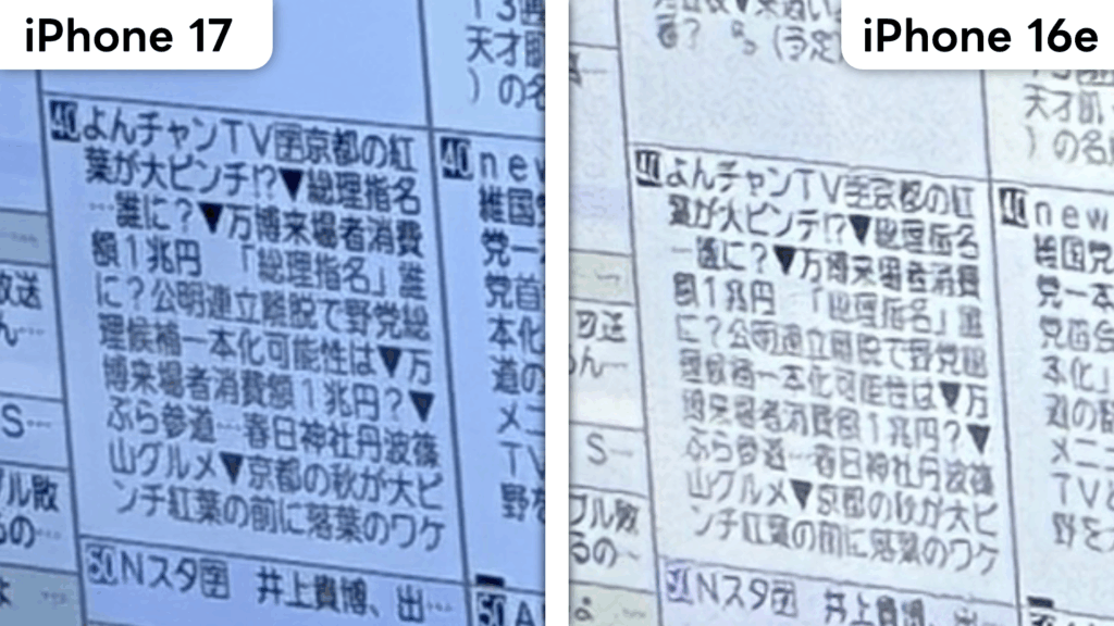 そこでここからは、「iPhone 17」と「iPhone 16e」でズームした際の補正の自然さや精度について比較していきます。