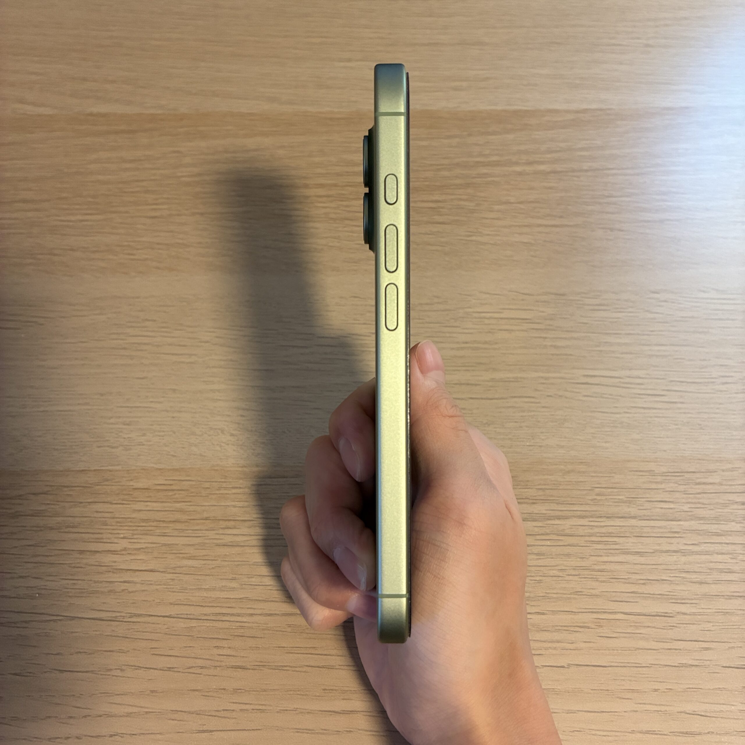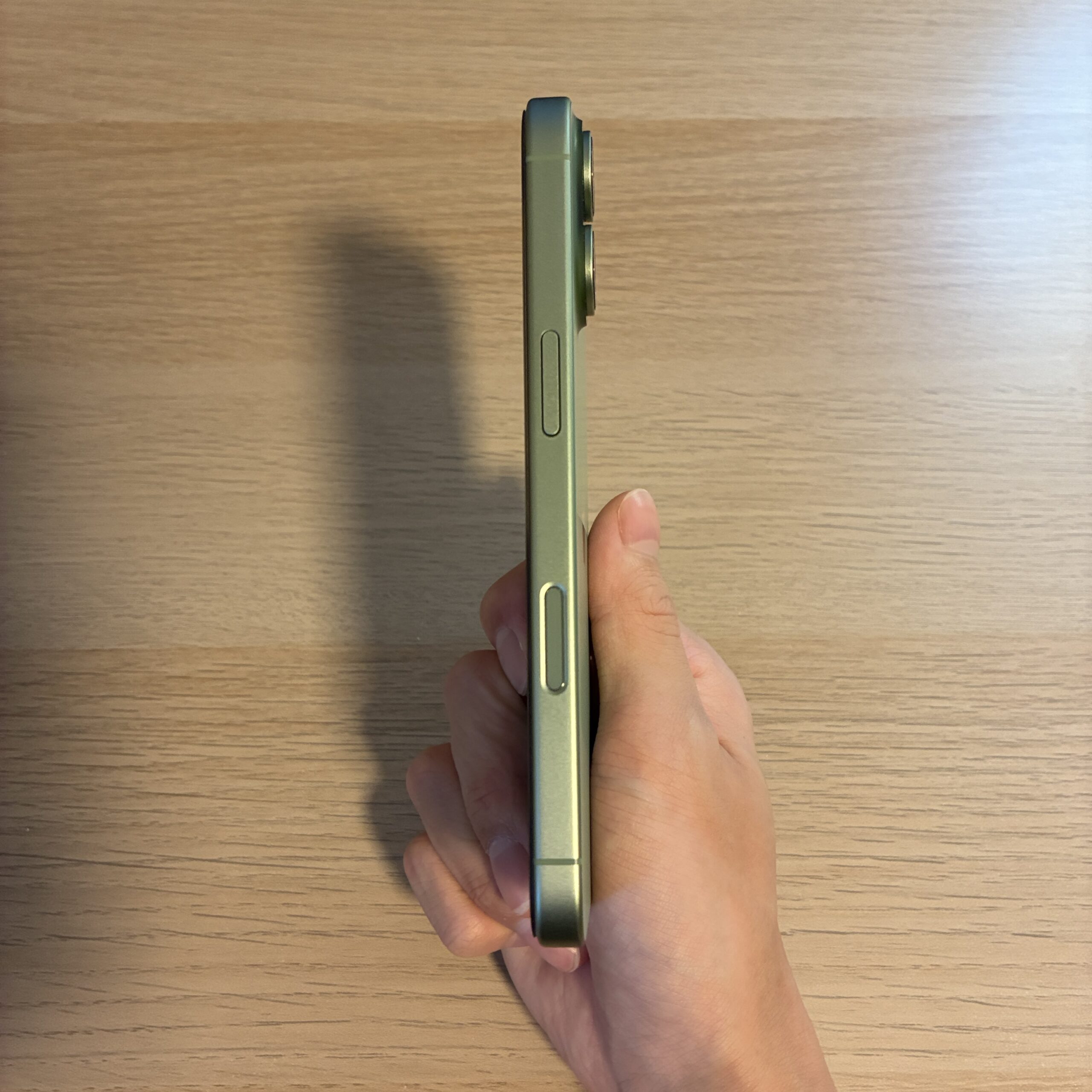 そのためiPhone 16と比較して、音量ボタンの下にあったSIMスロットの部分がないため少しすっきりした感じです。