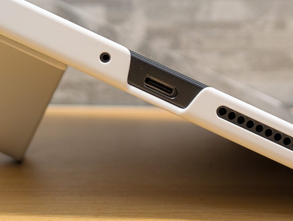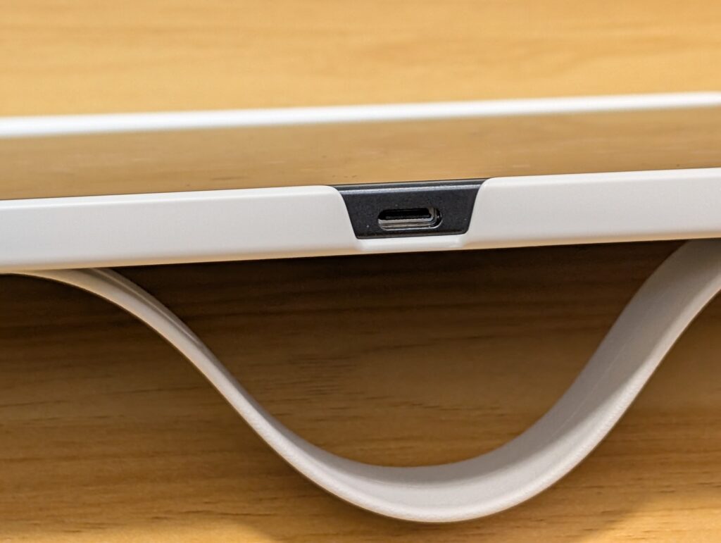 横向きでも縦向きでも使いやすいようになんとXiaomi Pad Miniには二つもType-Cが付いている。どちらも専用の充電器で充電を試してみたところ67W充電を使うことができたので、スタンドに立てかけてPCライクで有線キーボード、マウスを使いながら、別ポートで充電をできるのはかなり魅力的。サイズ感が小さいから作業しずらいという意見は一定数あると思うが、隙間時間でサクッとやる作業にはもってこいの機能だと感じる。