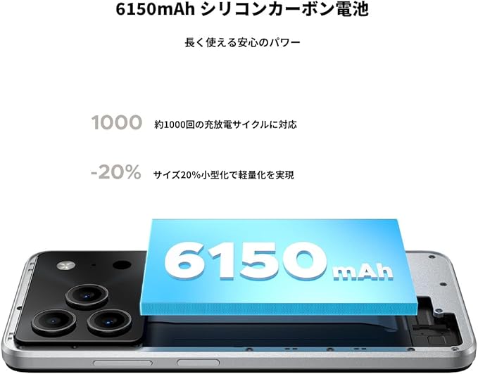 - 6150mAhの超大容量バッテリー がもたらす、圧倒的な安心感