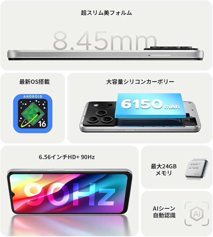 本モデルは、人気を博した「Note58」や「Note59」に続くNoteシリーズの最新作。その最大の特徴は、なんと言っても「最新Android 16」を搭載しながら、1万円台前半という衝撃的な価格を実現している点です。