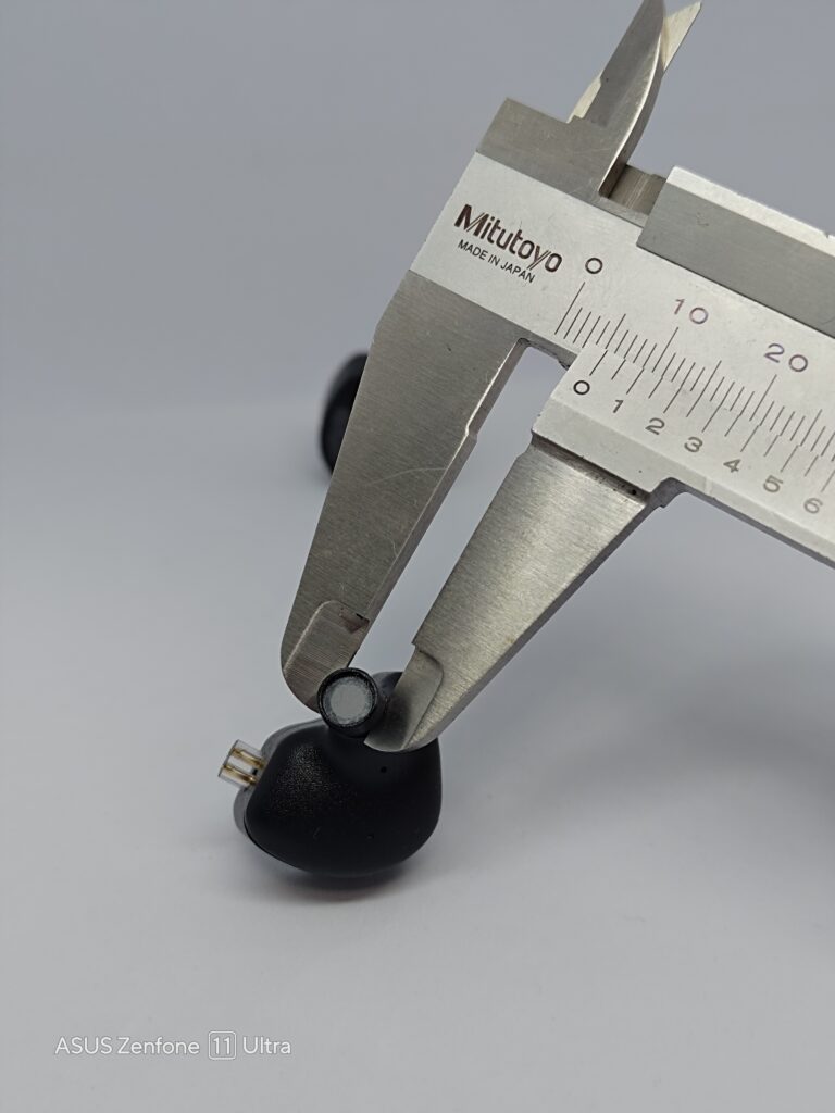 CCZ CZ10 天工輪のノズル径は、最も太い返しの部分でφ6.1mm、溝の部分でφ5.25mmとなっていました。きわめて標準的なノズル径のため、装着できないイヤーピースなどはほとんどないでしょう。返しもしっかりあるため、脱着時にイヤーピースが外れてしまうこともなく、非常に快適です。