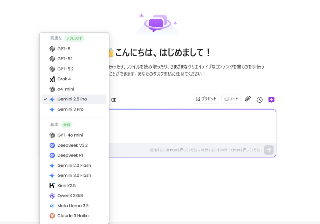 2026年1月現在、EaseMate AIが接続している主要モデルのラインナップは圧巻の一言です。まさに「AIのデパート」の名に恥じない品揃えと言えるでしょう。