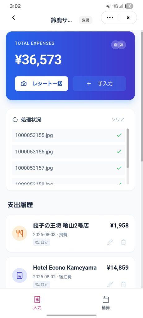 アプリとしては完全に機能しています!最初はレシートの撮影をするだけで家計簿をつけられるようなアプリを作ることにしました。ただ会話していくうちに、家計簿ではなく友達との割り勘アプリにしたら自分に合ったオリジナルアプリが作れるじゃん!ということでそちらに修正してもらうことに。