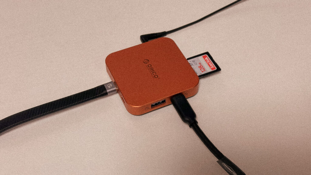 ORICO MG7を使っていて最も恩恵を感じるのは、その驚異的な「8-in-1」ハブ機能です。単にデータを保存するだけでなく、以下の3つをケーブル1本で同時に実現してくれます。