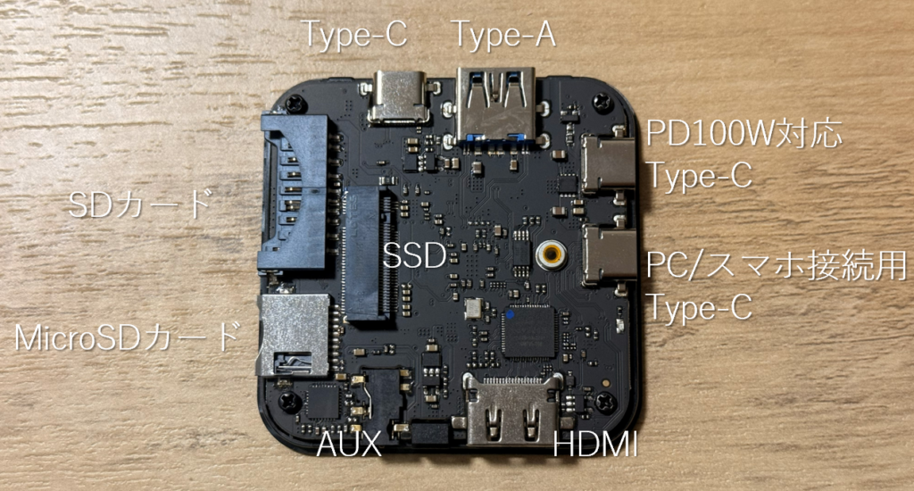 ORICO MG7の搭載ポート(8in1で充電も映像出力も!)