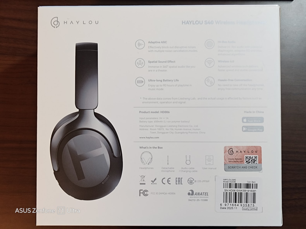 まずはHAYLOU S40のカタログスペックを見ていこう!