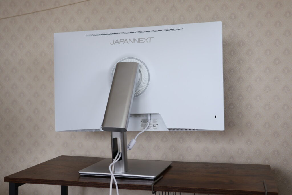 JAPANNEXTのラインナップのなかでも、この『JN-IPST27U-FLDC6』は特徴的なモデルになります。白モニターとなっていて、フレームレスデザインです。3辺フレームレスで下部は太めの画面非表示領域ですが、ロゴがありません!ということで縦回転した時もロゴが横になることなく使えますね。