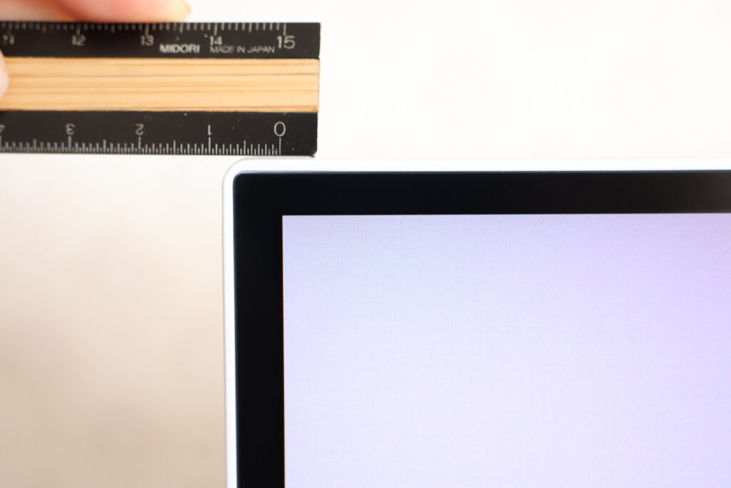 フレームの幅は上左右で7ミリ程度でした。下部分は2センチほどあります。