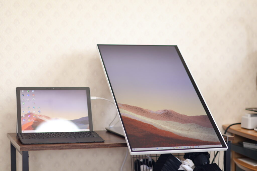 デスクの上を単なる作業場ではなく、もっと自由で、もっと心地いい場所に変えてくれる。このモニターには、そんな力があると感じました。